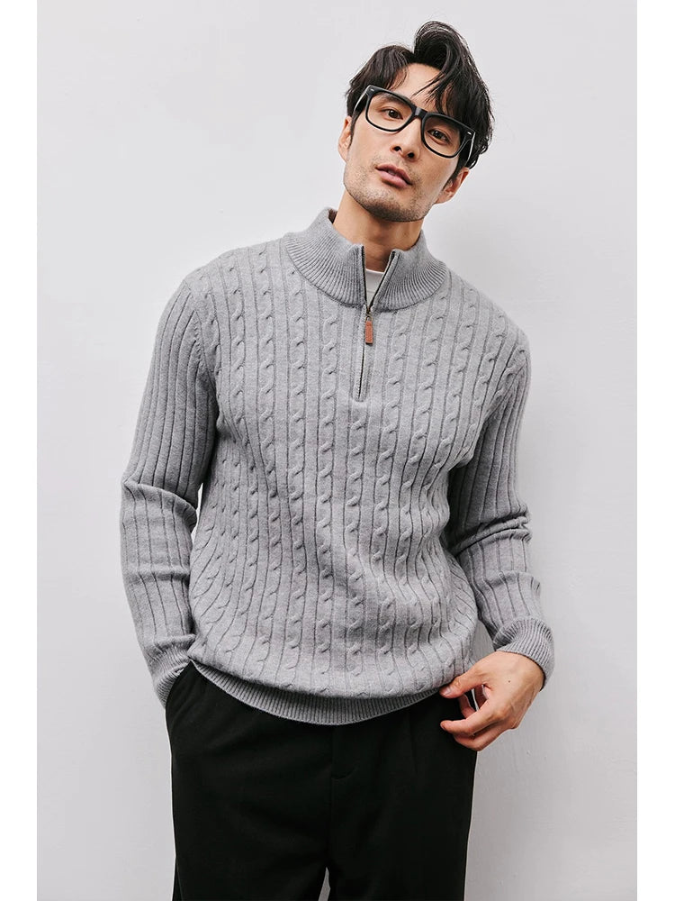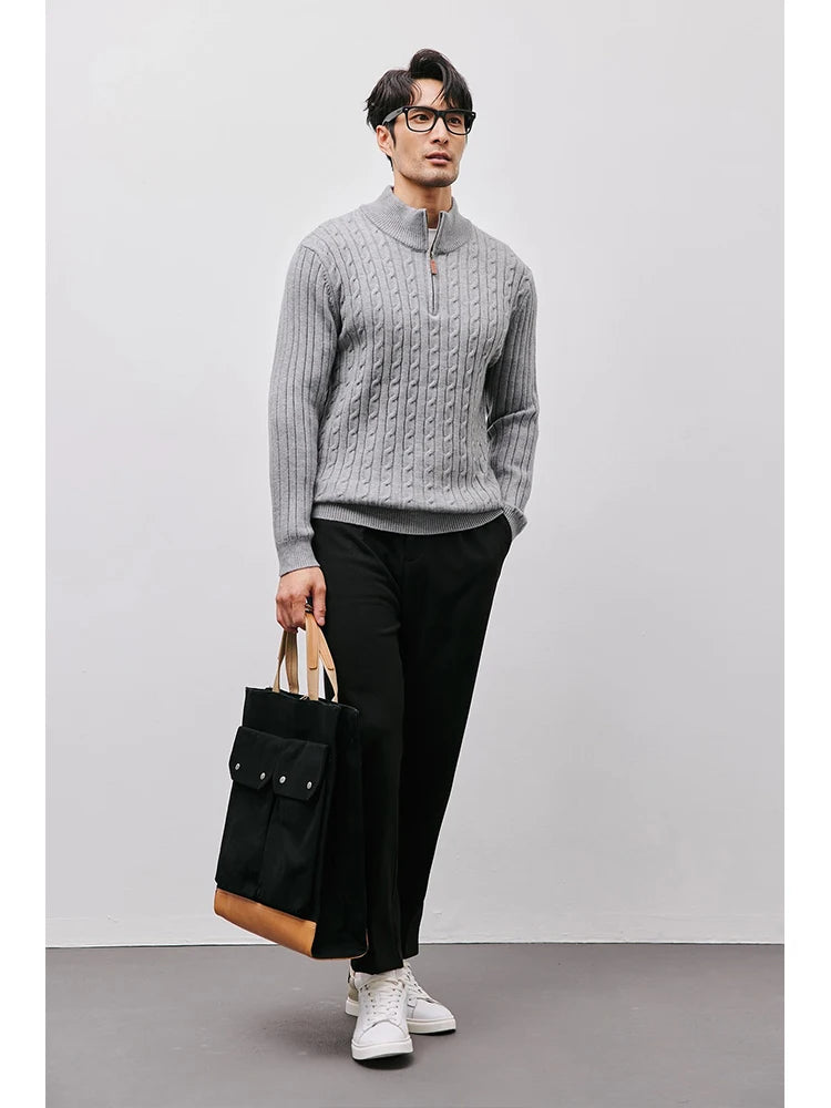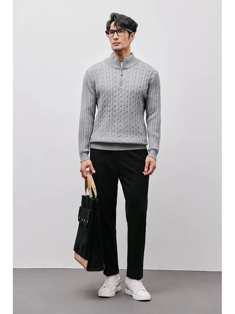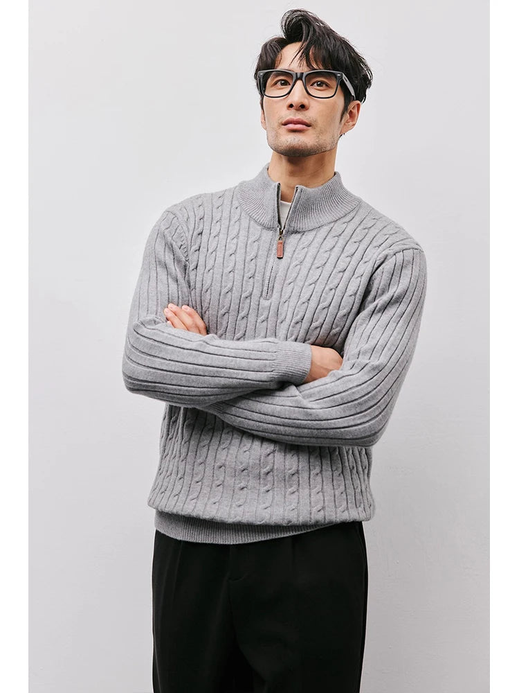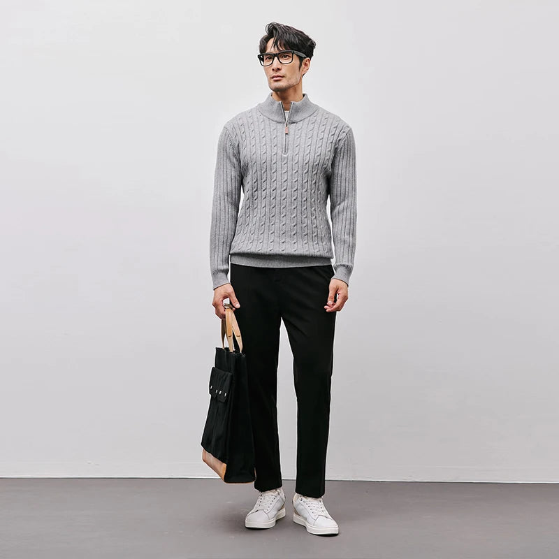 Elevate your winter wardrobe with this Men’s Gray Half-Zip Knitted Sweater, designed for timeless comfort and effortless sophistication. The soft cable-knit texture and half-zip collar offer both warmth and versatility ideal for layering over shirts or wearing solo.