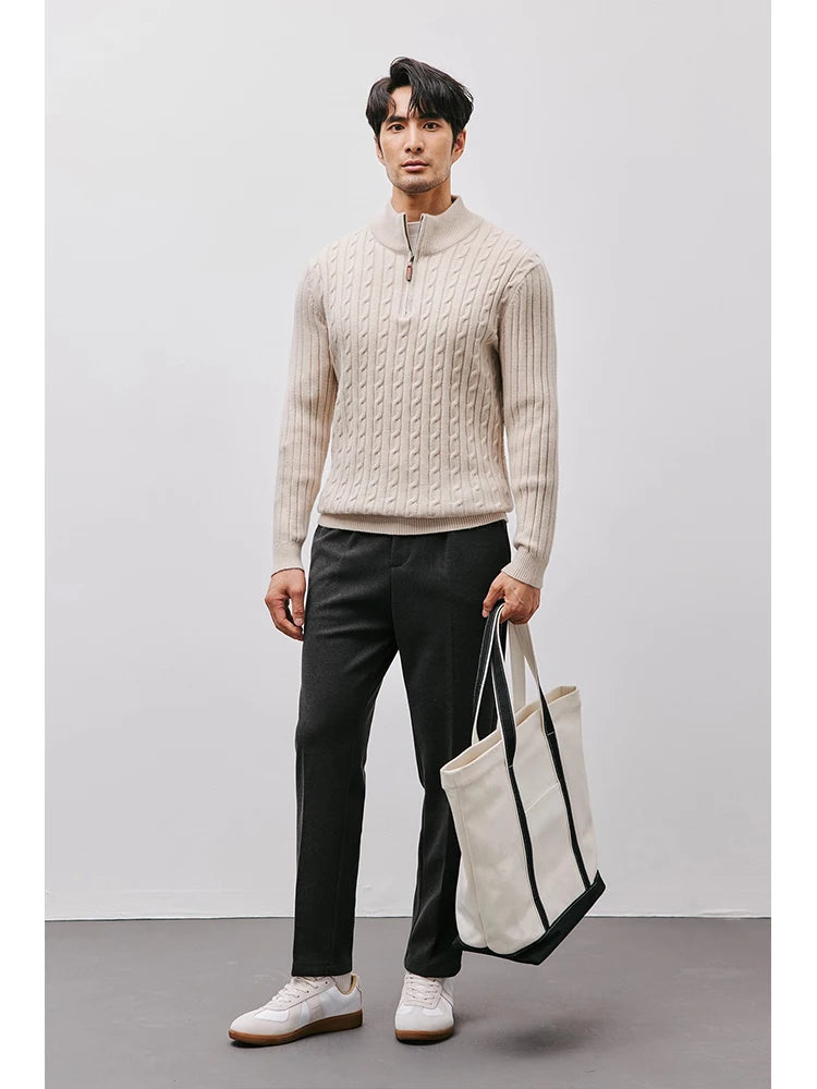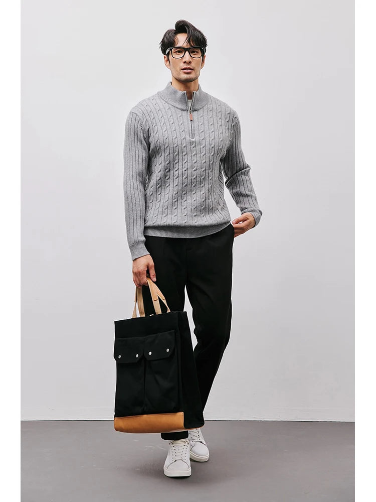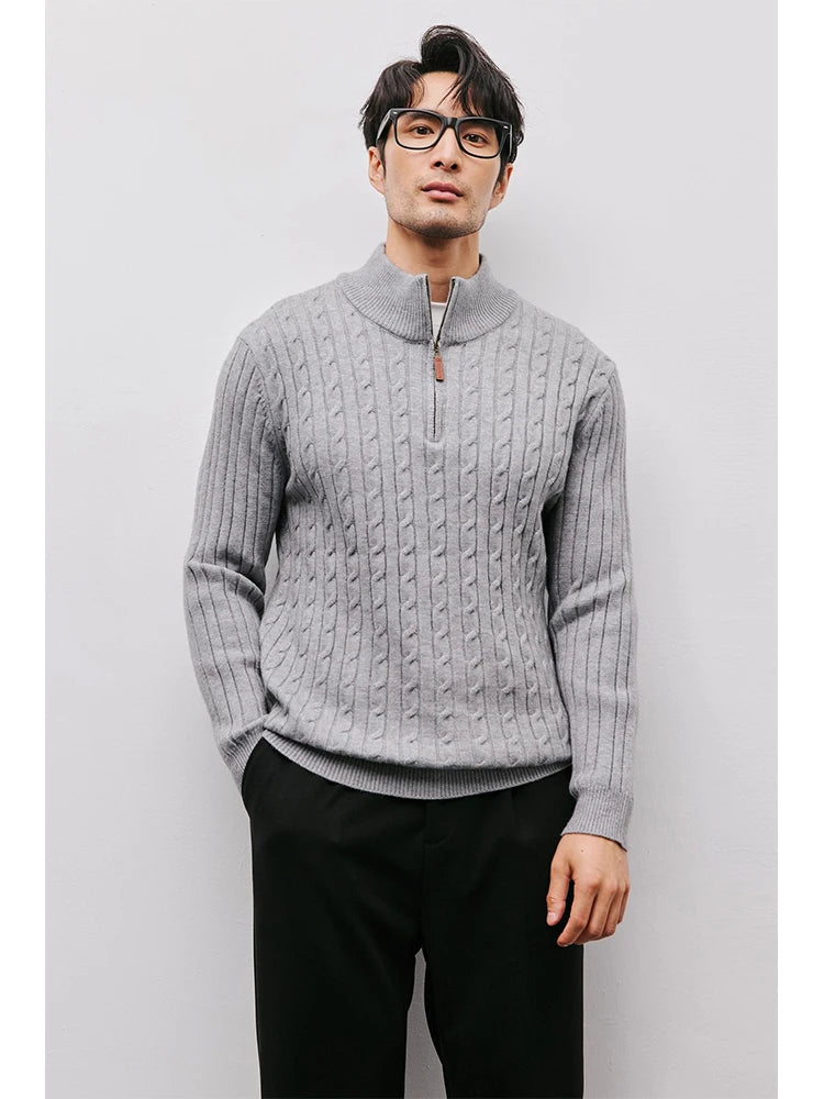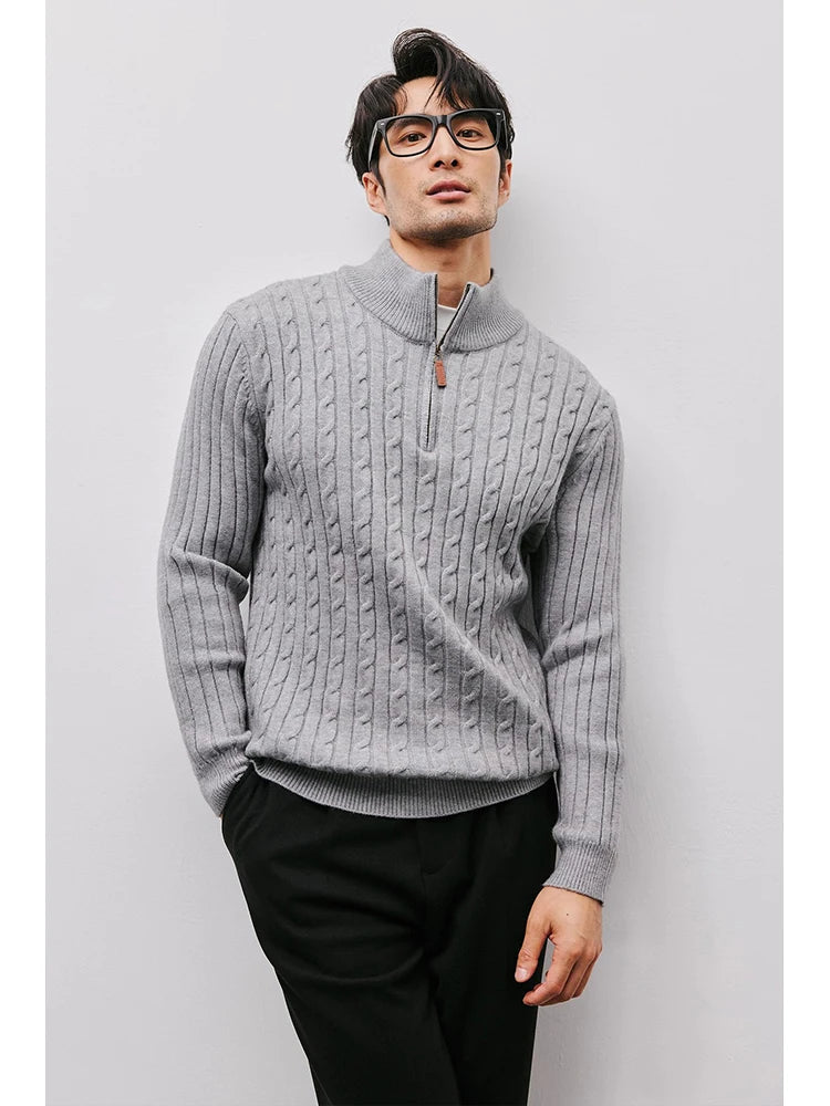 Elevate your winter wardrobe with this Men’s Gray Half-Zip Knitted Sweater, designed for timeless comfort and effortless sophistication. The soft cable-knit texture and half-zip collar offer both warmth and versatility ideal for layering over shirts or wearing solo.
