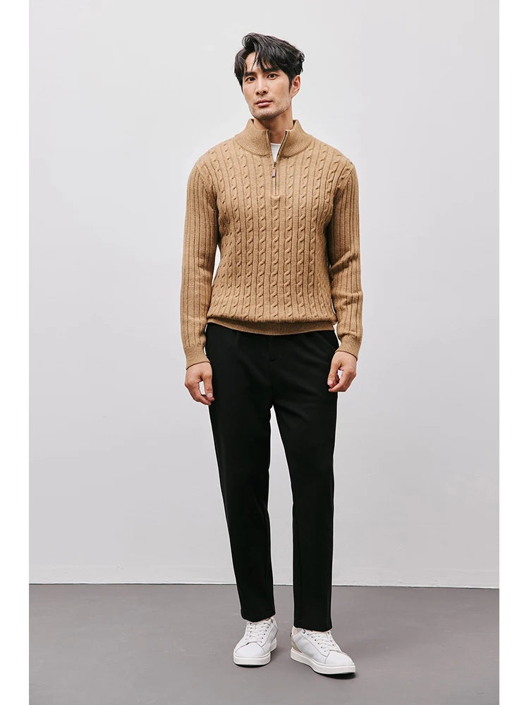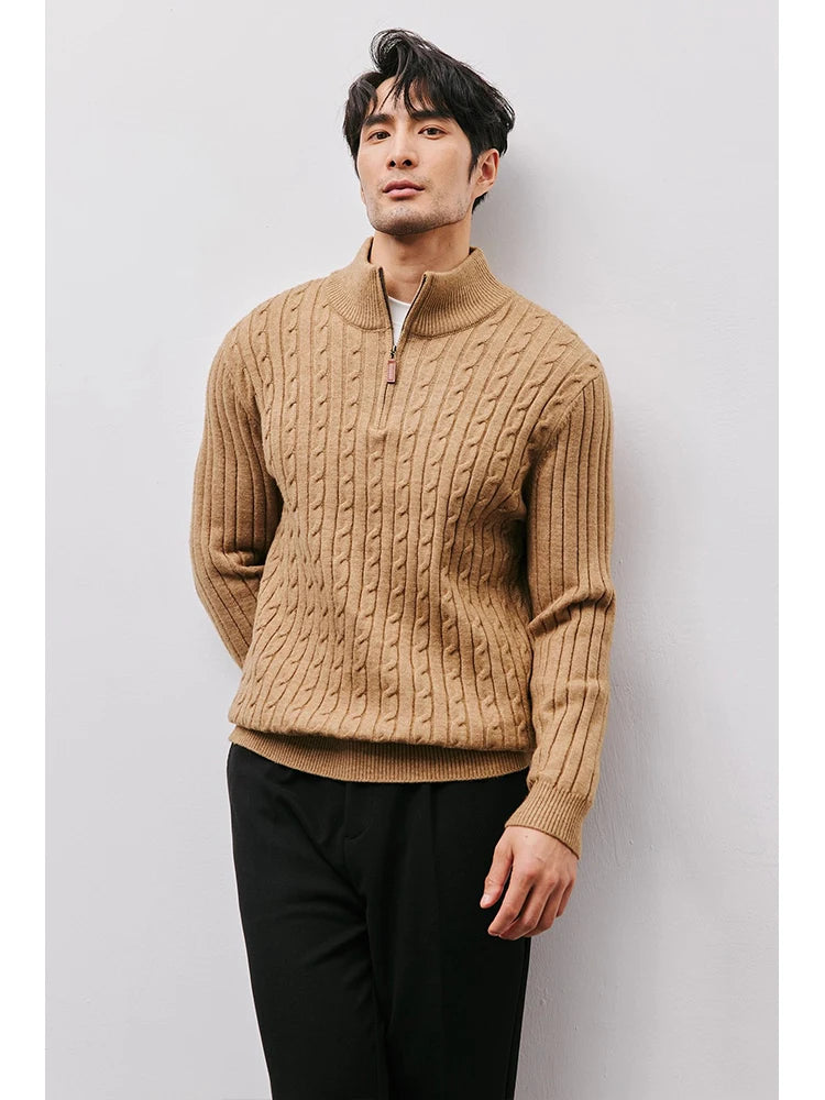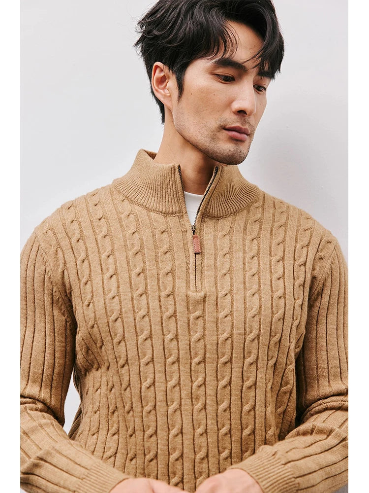 Design: Cable-knit pattern with ribbed cuffs and hem