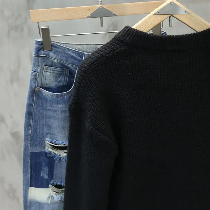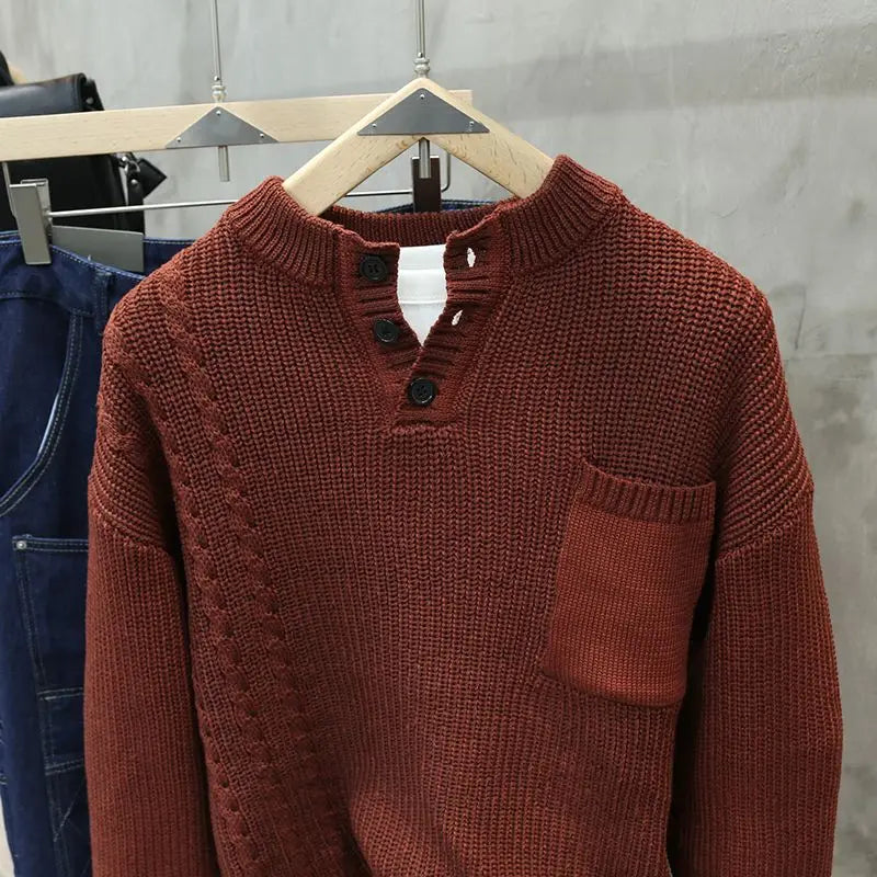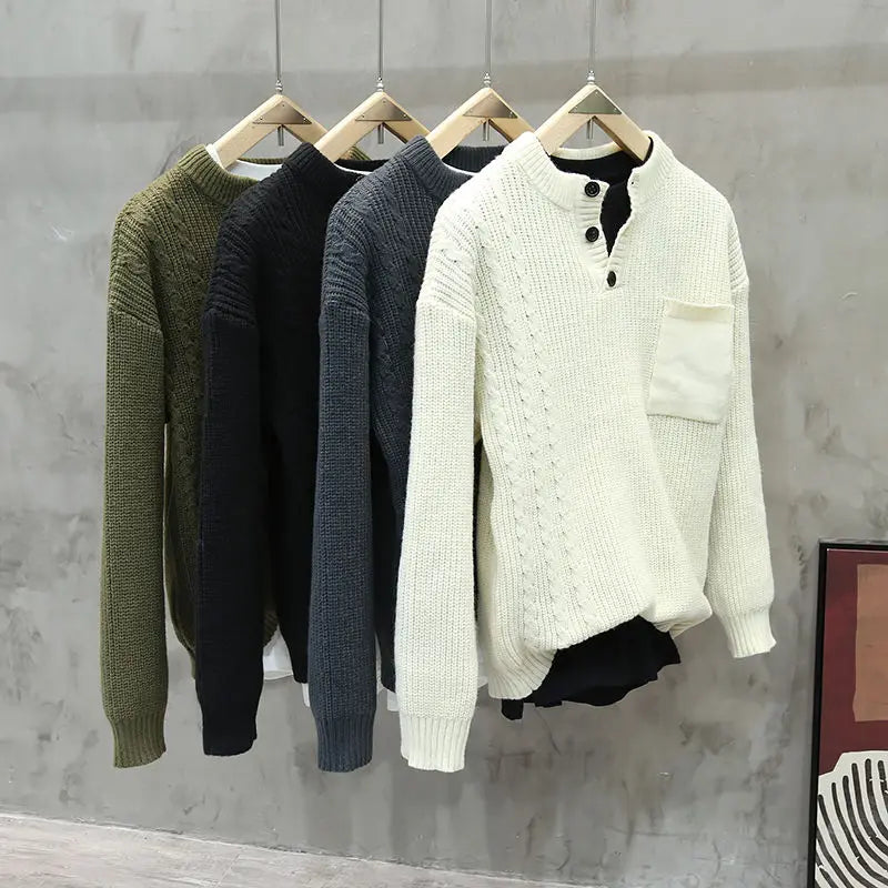 Half Button Neck Design: A modern twist to the classic men’s knitted sweater, offering both warmth and style.