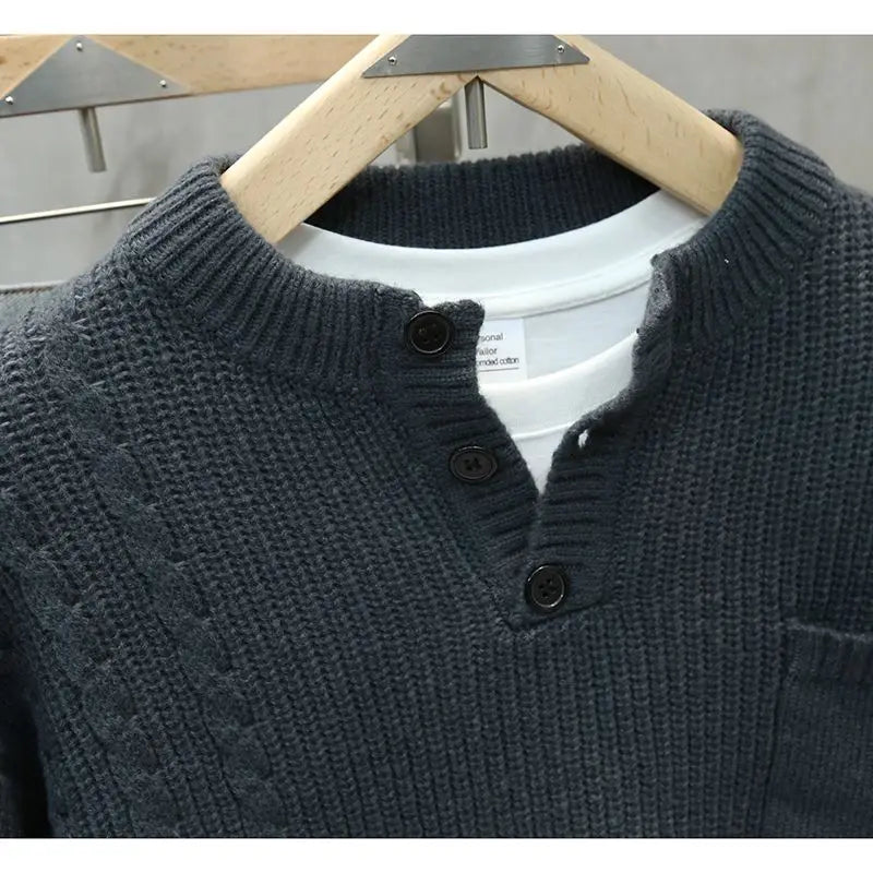 Stay warm and refined with this men’s half button knitted sweater, designed for comfort and everyday sophistication. Made with a soft, thick knit texture, this casual winter pullover offers a relaxed fit with a stylish front chest pocket and ribbed cuffs for a modern look. The half-button neckline adds versatility — wear it buttoned for a structured style or open for a laid-back vibe. Available in neutral tones, it’s the perfect knitted sweater for men who value timeless fashion and comfort.
