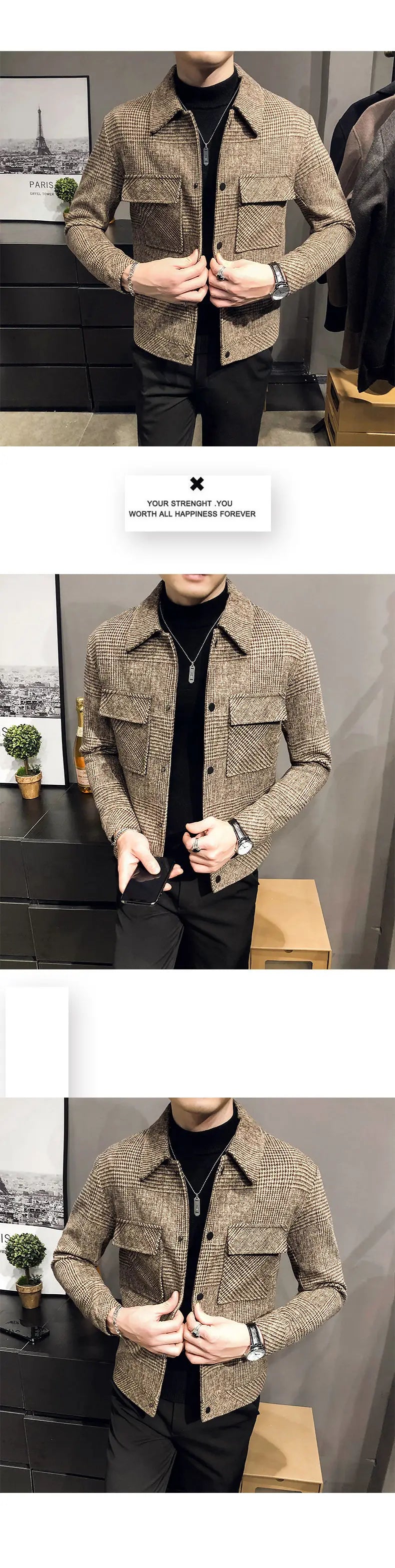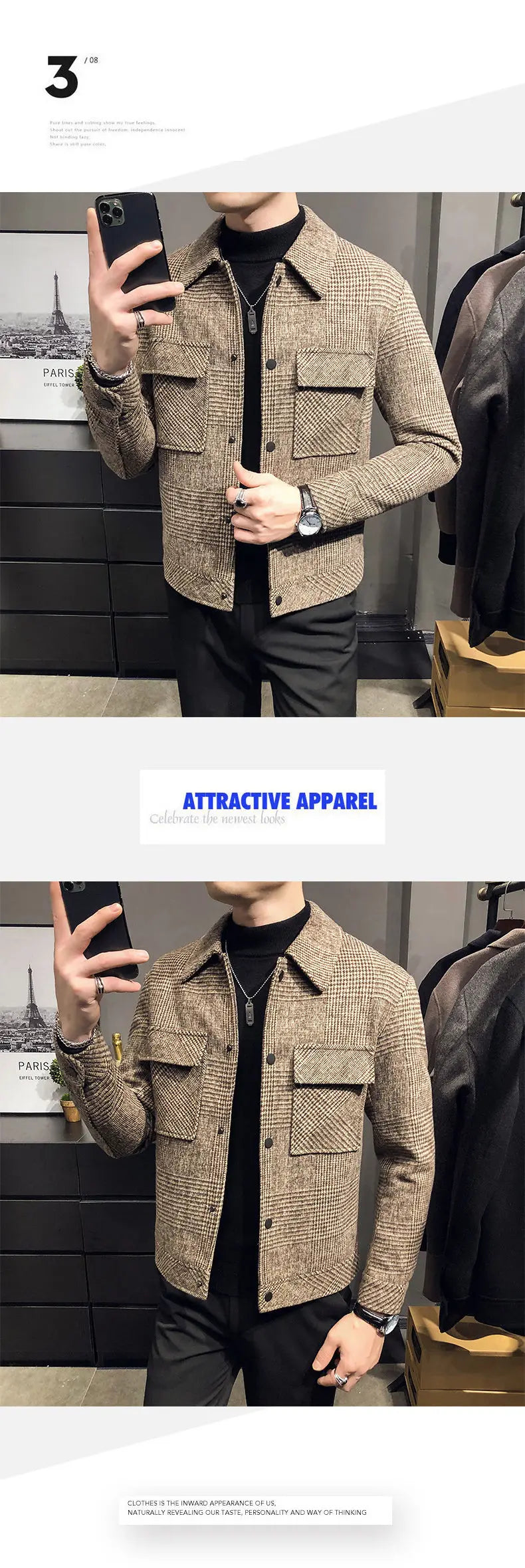 Stay effortlessly sharp with this Men’s Brown Plaid Wool Jacket, crafted for comfort and timeless style. Its structured wool-blend fabric delivers both warmth and sophistication, while the classic check pattern adds a refined, urban touch.