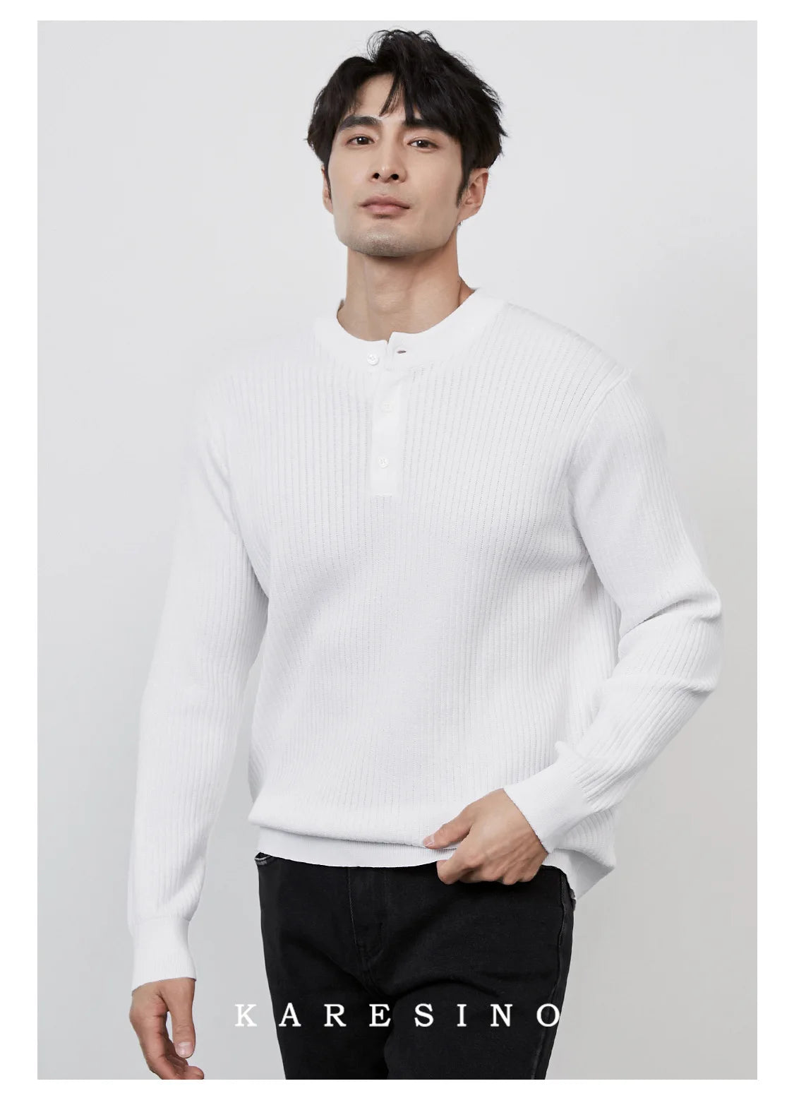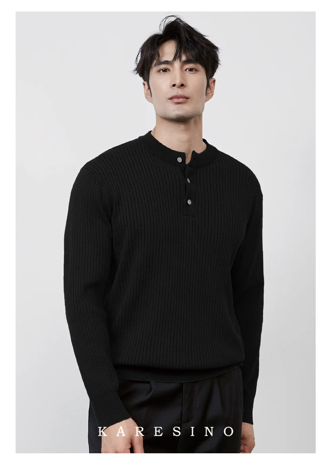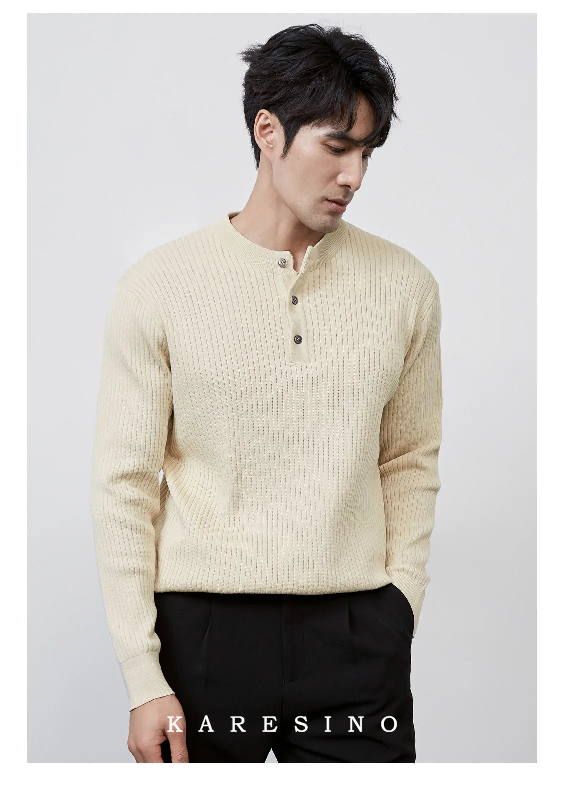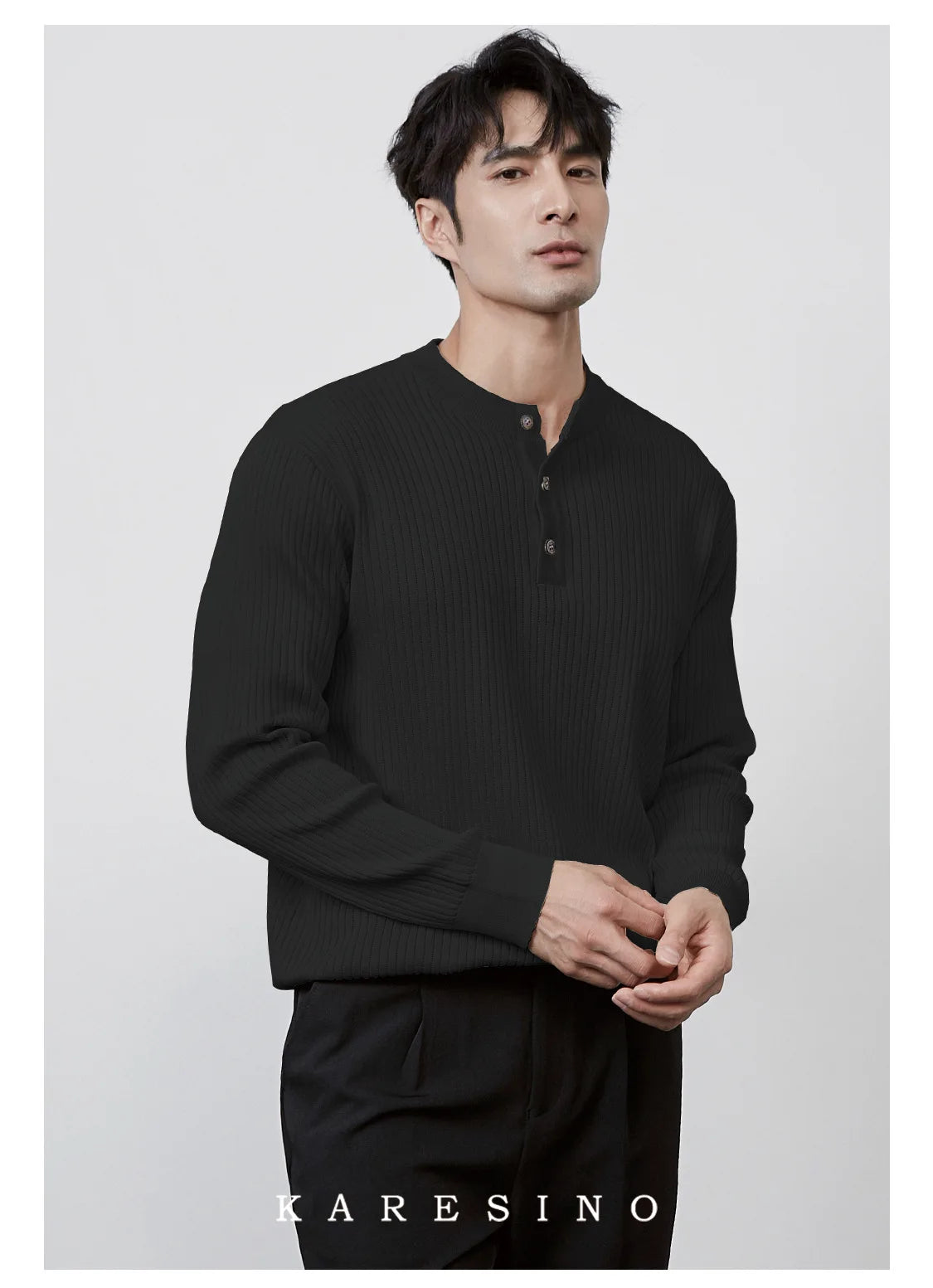 Men’s Ribbed Knit Henley Sweater – Casual Pullover for Fall & Winter