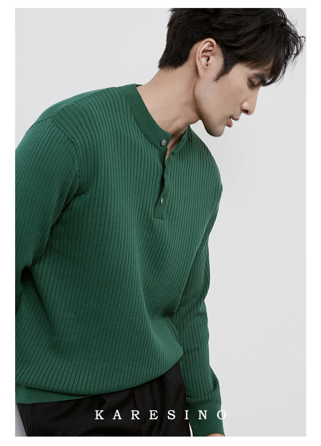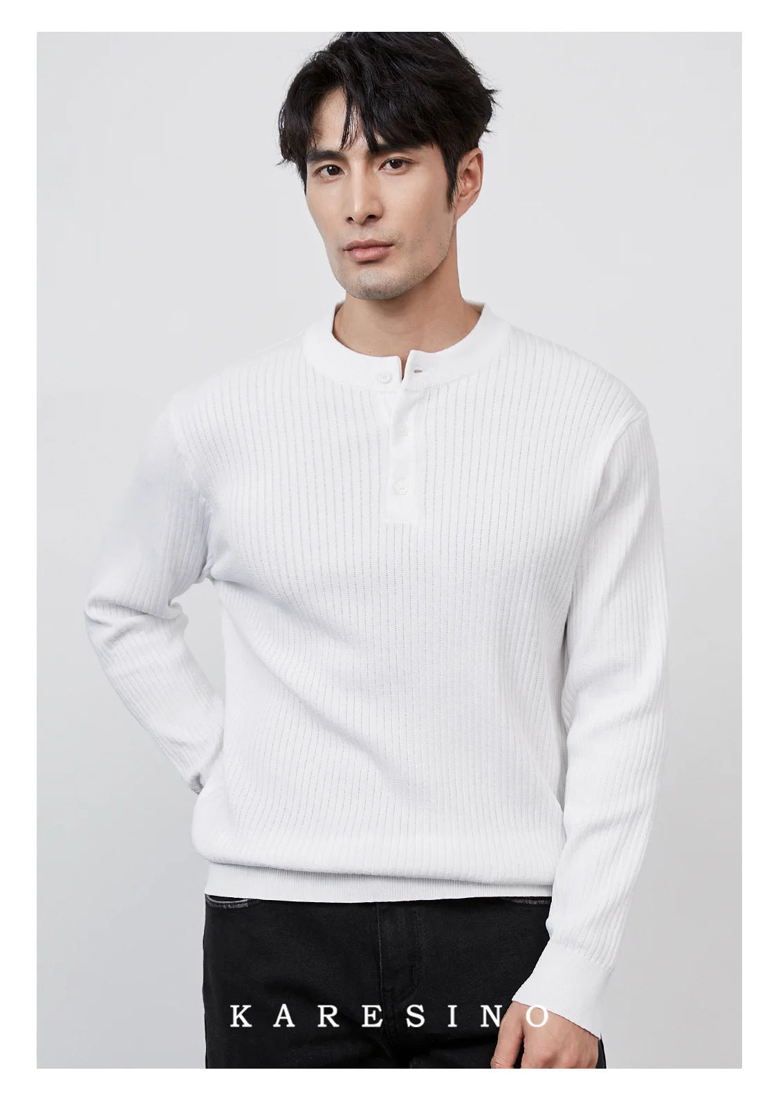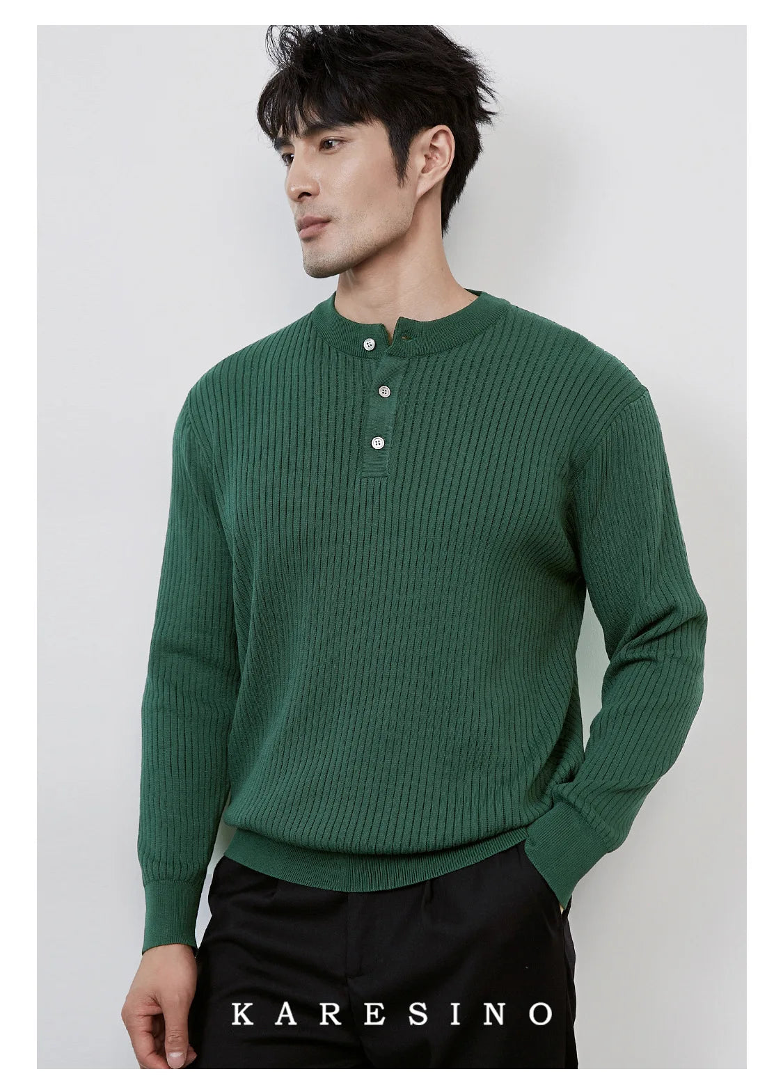 Men’s Ribbed Knit Henley Sweater – Casual Pullover for Fall & Winter