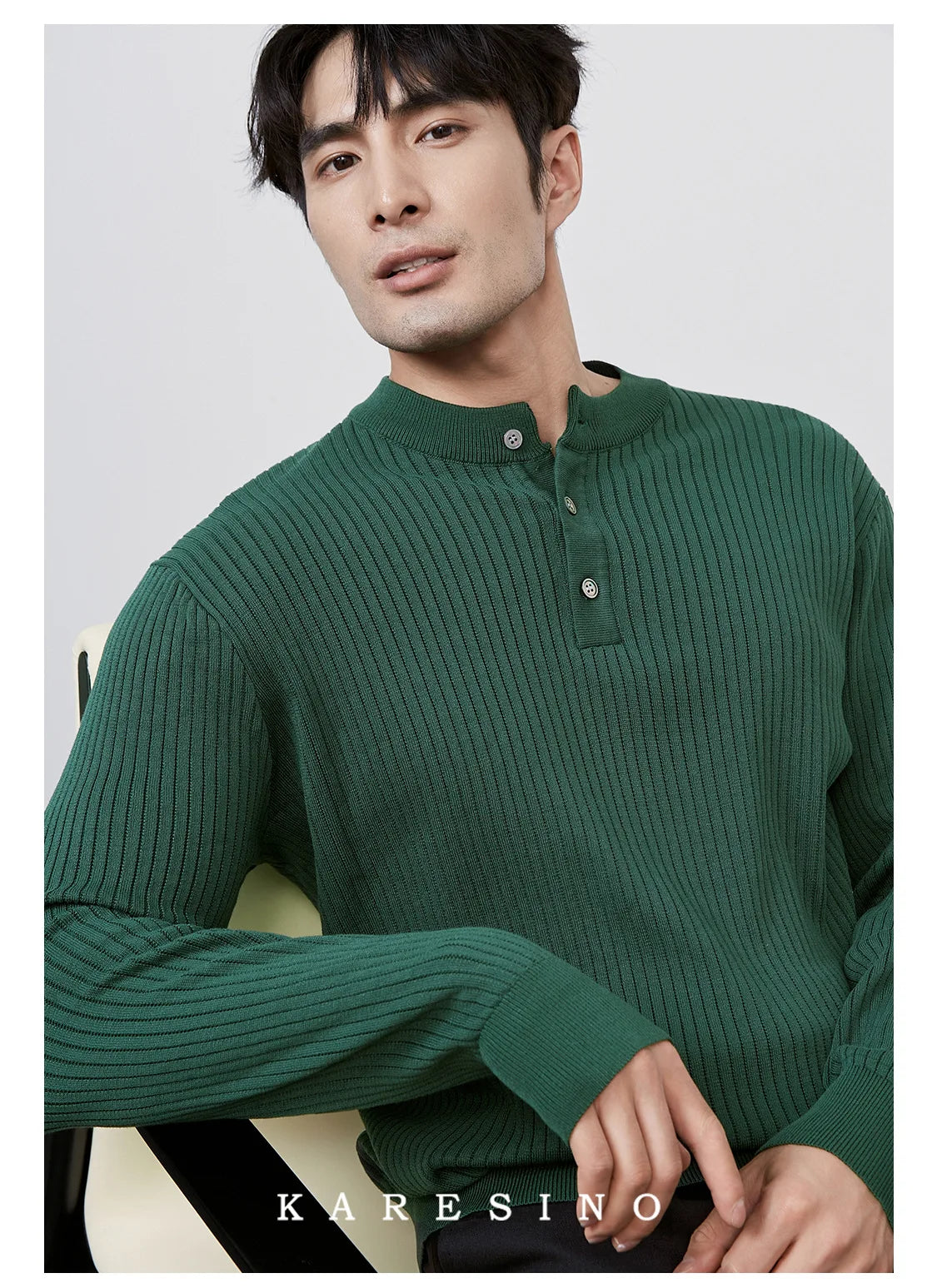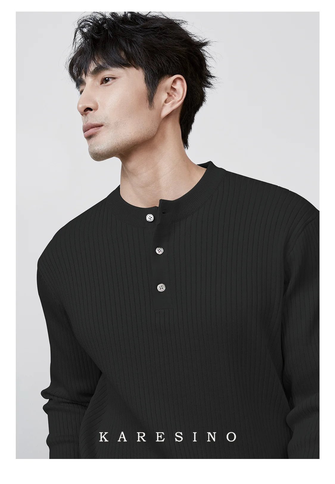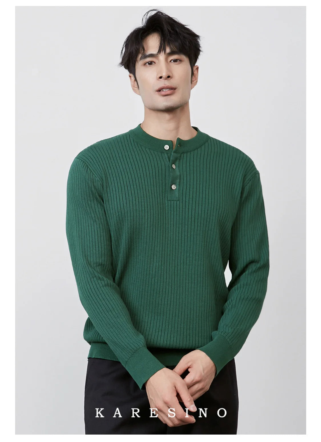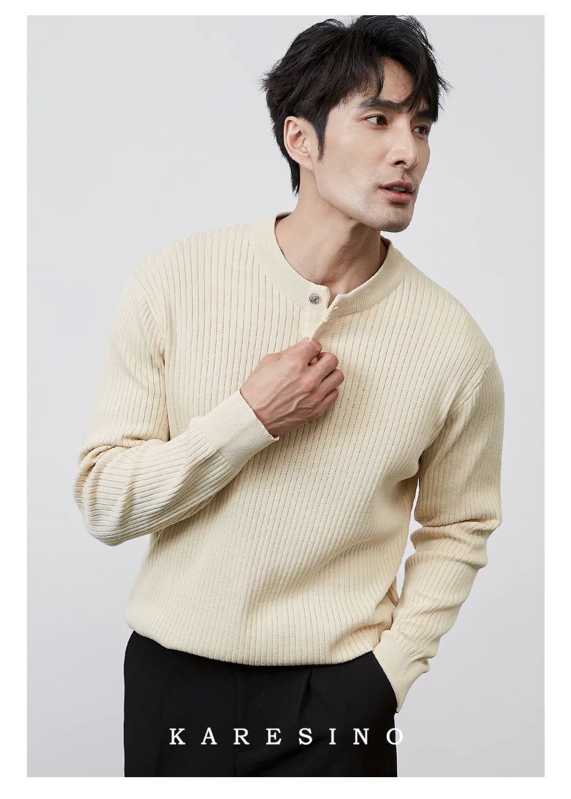 Men’s Ribbed Knit Henley Sweater – Casual Pullover for Fall & Winter