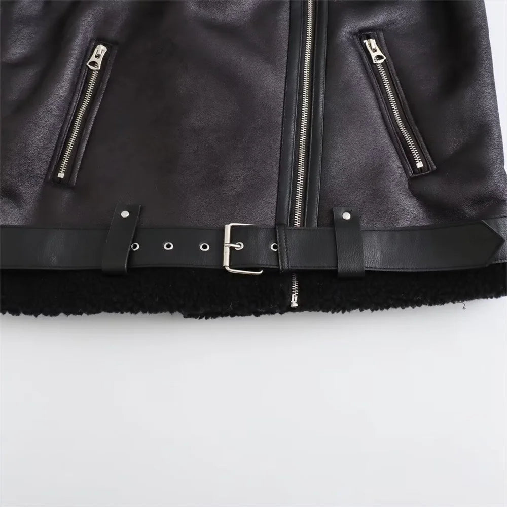 With a classic biker silhouette, zip closure, adjustable belt, and metallic accents, this jacket adds instant sophistication to any outfit. Whether you’re dressing up for a night out or layering over a casual look, it delivers both comfort and confidence.