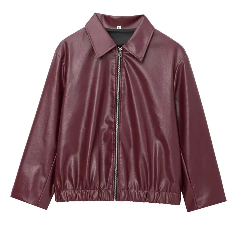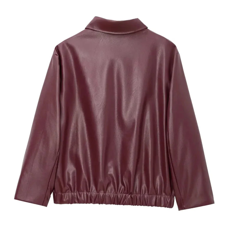 Add an edge to your outfit with this Women's Burgundy Faux Leather Jacket, designed for bold yet minimalist fashion lovers. Crafted from smooth PU leather, this piece combines comfort and sophistication in one sleek silhouette.